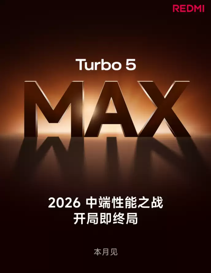 1月5日,Redmi手机正式官宣,将在本月推出全新机型——Redmi Turbo 5 Max。这也是Redmi Turbo系列首次引入“Max”后缀,该系列此前仅提供标准版与Pro版两种配置。