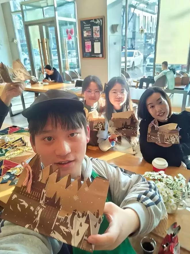 最令人触动的是,霍格沃茨本身就是一个社区,而星巴克的伙伴将魔法体验延伸至社群共创,通过“小小魔法师”魔药课咖啡教室(虹吸煮咖啡结合咒语讲解)、主题手工教室(用联名纸袋制作魔法纸巾盒)、编织友好空间等活动,让很多“哈迷”第一次参与到还原魔法世界的共创之中。