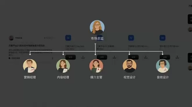 随后,营销经理、内容经理、媒介主管、视觉设计、音效设计等多个子智能体自动组队,根据各自职责进行任务拆解、协同执行。