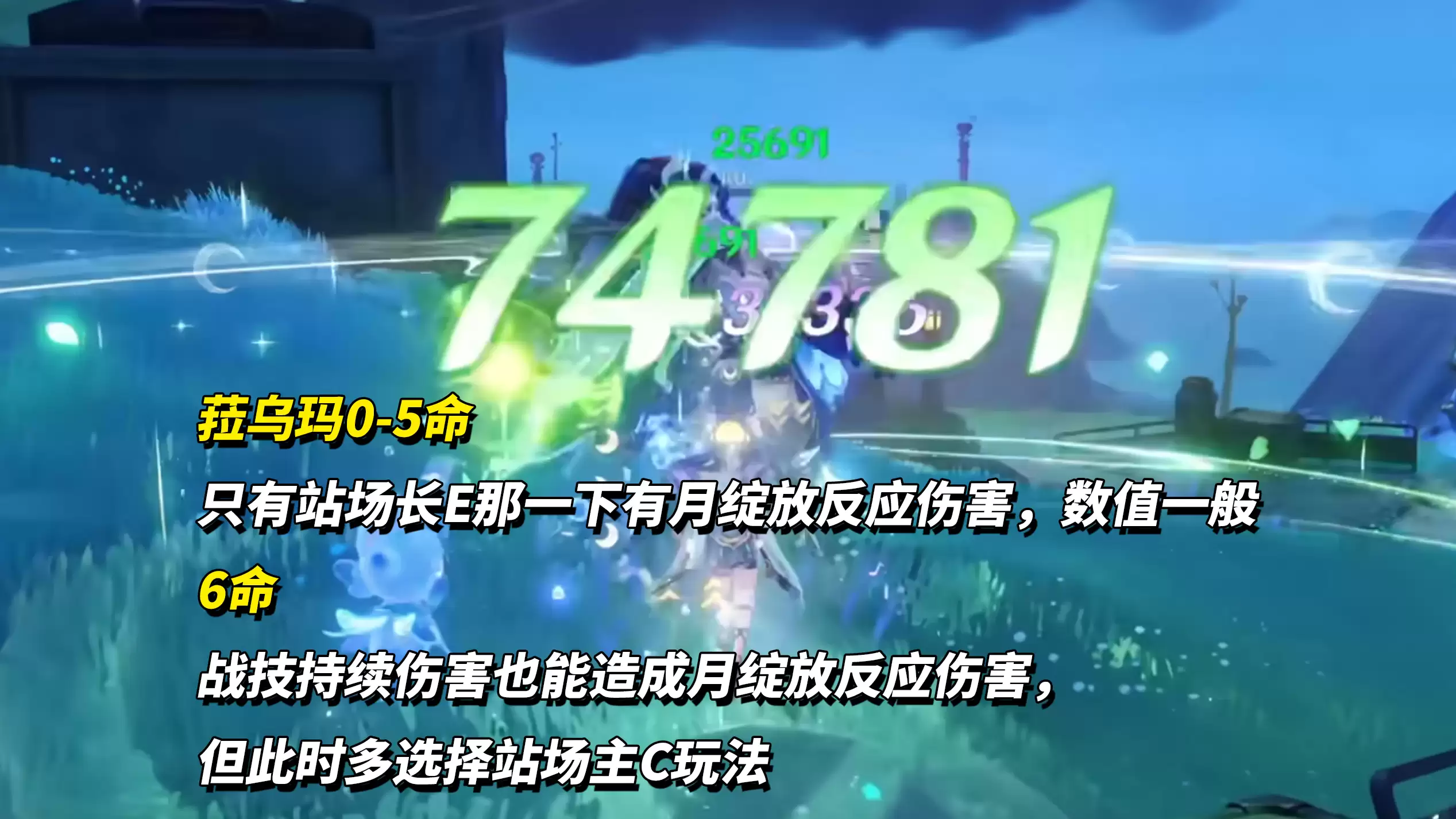 那么拉乌玛是否能用呢?这要看你的具体配置。在非满命的情况下,只有让她长时间驻场使用元素战技,才能稳定触发月曜的扩散伤害,因此并不推荐。但如果你的拉乌玛已经达到满命,那就可以根据自己的需求来选择了——既可以走「晨星与月的晓歌」的后台副C路线,也可以选择「穹境示现之夜」的站场主C路线。