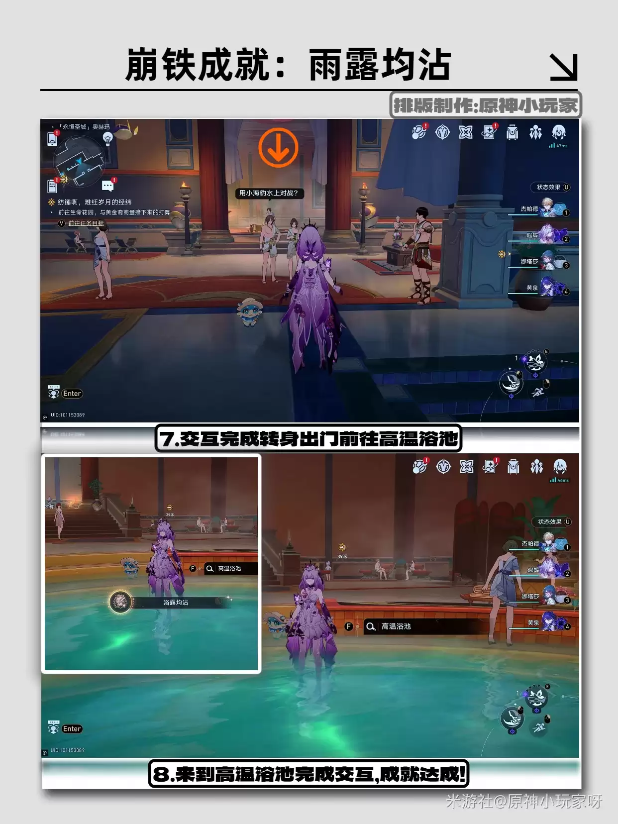 《崩坏:星穹铁道》中的“雨露均沾”成就该怎样解锁呢?今天为大家带来的正是“雨露均沾”成就详细攻略。这项成就名为“雨露均沾”,需要玩家在云石天宫区域,分别体验高温浴池、低温浴池与试温池。由玩家“原神小玩家呀”为大家详细分享达成这一成就的具体方法。