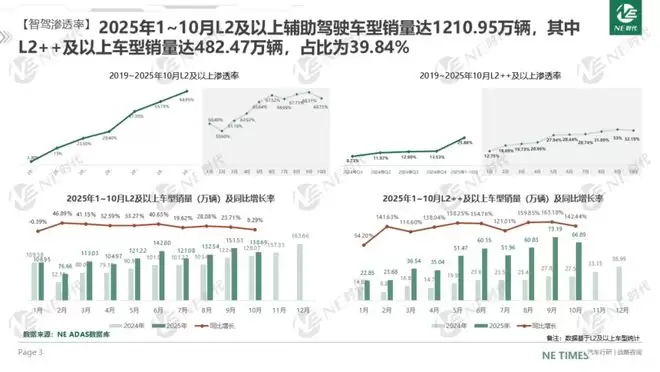 如果将过去五年视为智能驾驶的技术预备期,那么2025年开始,行业已经进入了真正的规模化竞赛。据NE时代数据,2025年1~10月L2及以上辅助驾驶渗透率达65%,这意味着,每卖出10辆新车中,就有超过6辆有基础智驾能力。