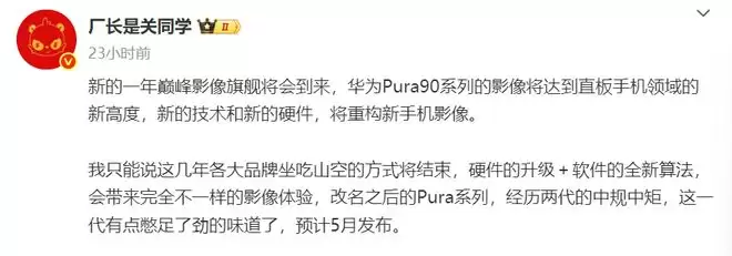 华为Pura 90系列确认5月发布,粉丝直呼等太久!
