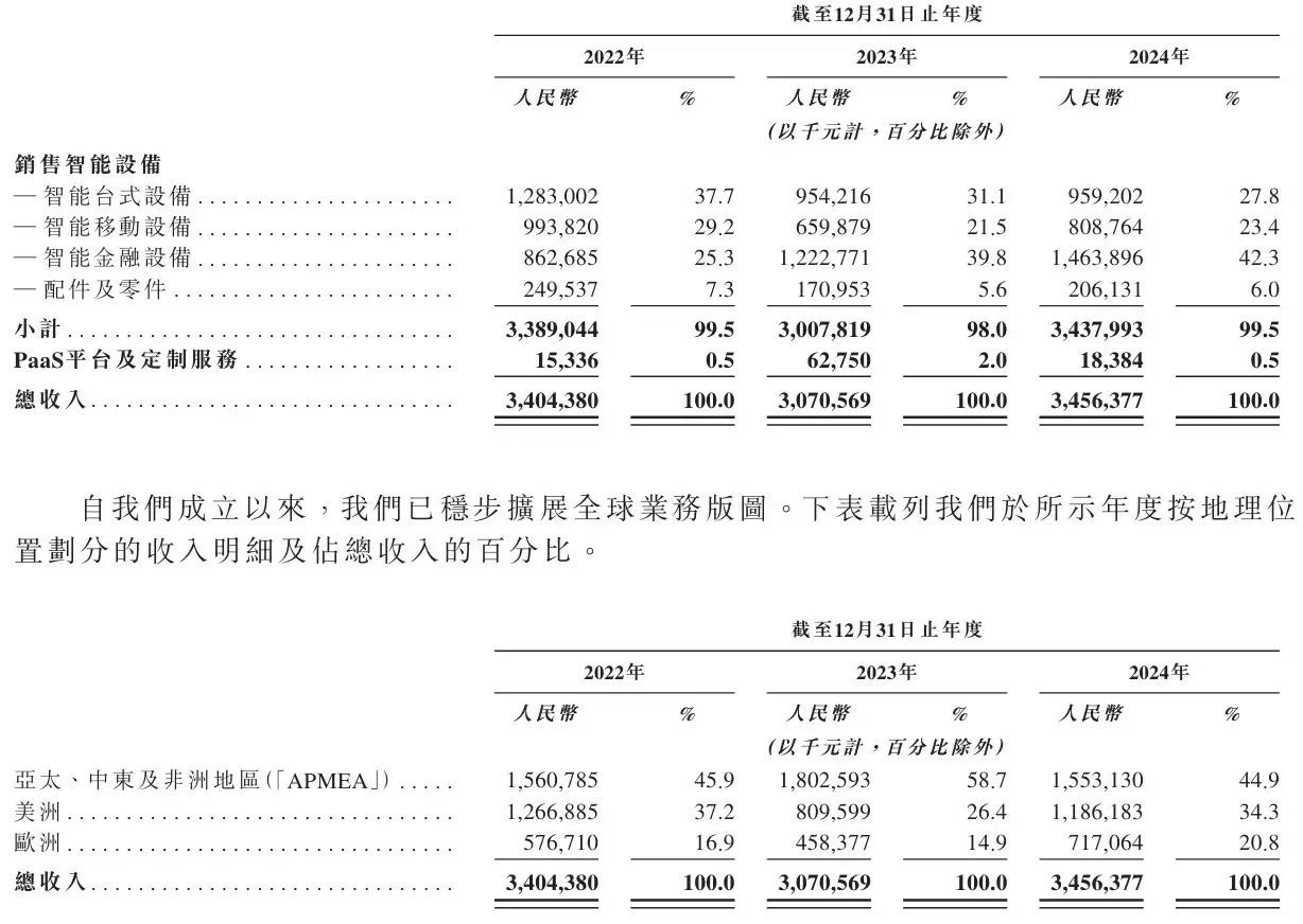 从收入来源地区看,商米科技2024年上半年来自美洲的收入为11.86亿元,占比34.3%;来自欧洲的收入为7.17亿元,占比20.8%。