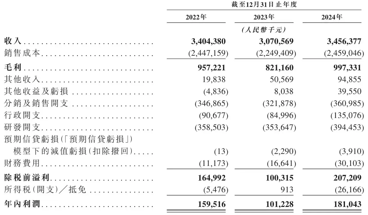 招股书显示,商米科技在2022年、2023年及2024年上半年的营收分别为34亿元、30.71亿元和34.56亿元;毛利润则分别达到9.57亿元、8.21亿元和9.97亿元。