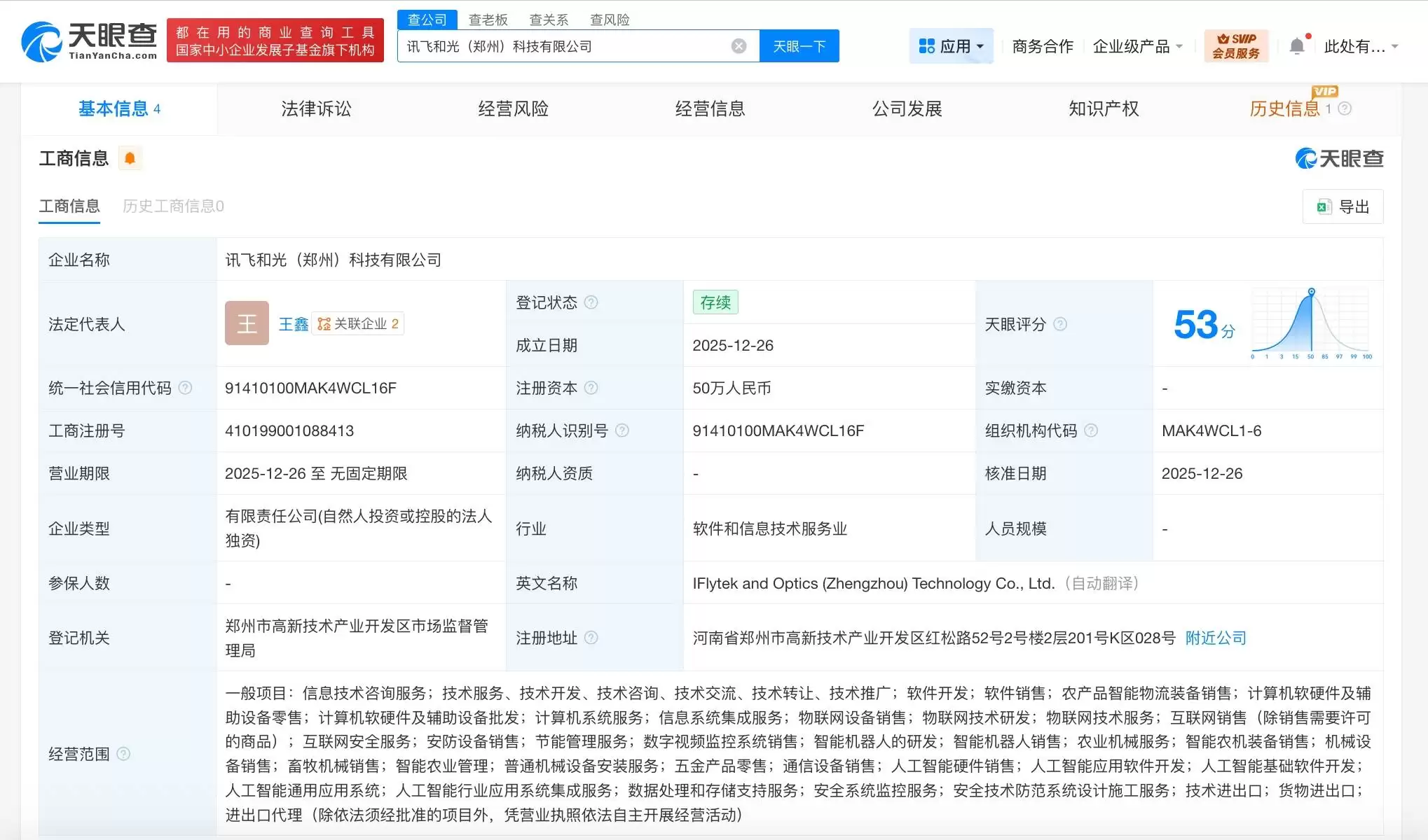 股权结构方面,该公司由上海讯飞和光科技有限公司全资控股,后者作为知名人工智能企业科大讯飞旗下的子公司。此次在郑州设立新公司,标志着该集团在中部地区的技术布局进一步深化。
