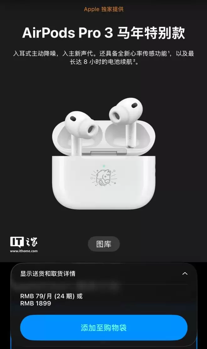 根据苹果官方发布的信息,AirPods Pro 3马年限定款目前仅在中国大陆、中国香港、中国台湾、马来西亚和新加坡五个地区发售。订购通道已于今日开放,首批订单预计将于1月8日开始发货。