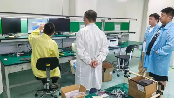泊维胜的工作人员在调试样机。 李蕾 摄影