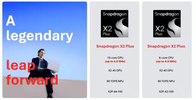 媒体表示,尽管X2 Plus的性能不及X2 Elite,但它的表现并不弱。10核和6核版本的CPU核心数量确实少于Elite系列(Elite分别拥有18核和12核),但高通表示,在CPU性能和能效方面,X2 Plus依然可以明显领先英特尔低功耗的Lunar Lake或Arrow Lake处理器。