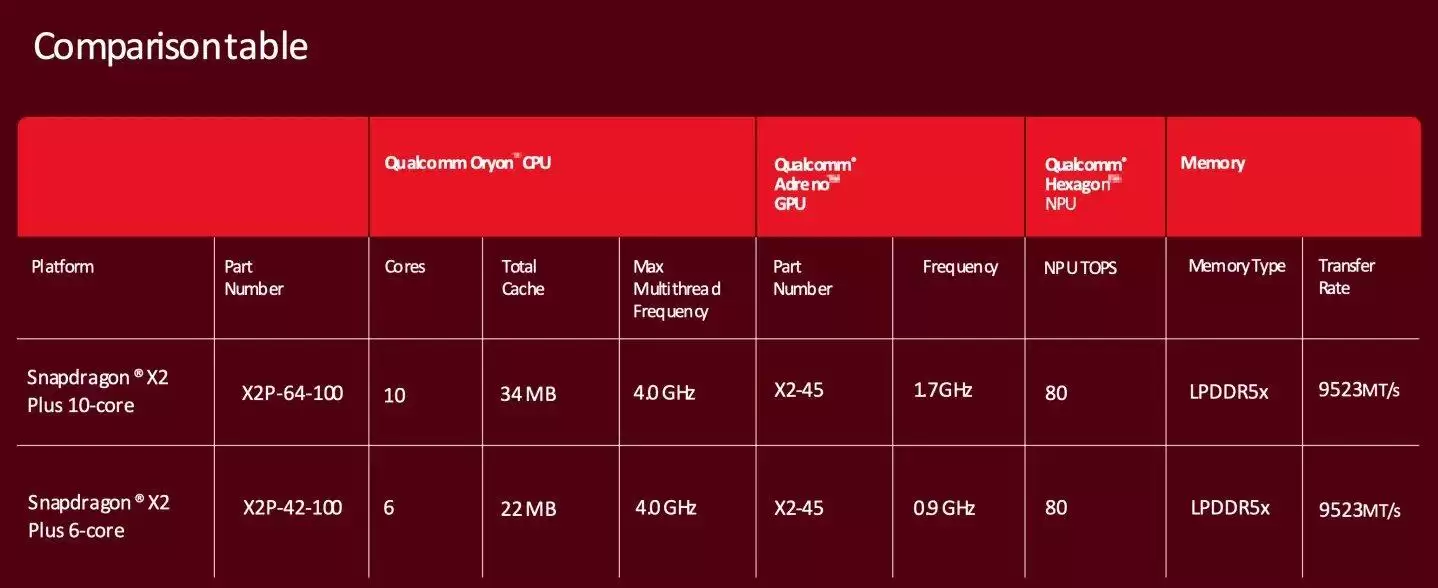 此次推出的新款X2 Plus处理器,是对现有产品线的精简版本,定位为更具价格优势的笔记本电脑核心处理器。高通在周一发布的声明中称,X2 Plus处理器将提供两个版本,一款配备10个计算核心,另一款则配备6个计算核心。这些核心均采用最新的第三代Oryon架构设计。