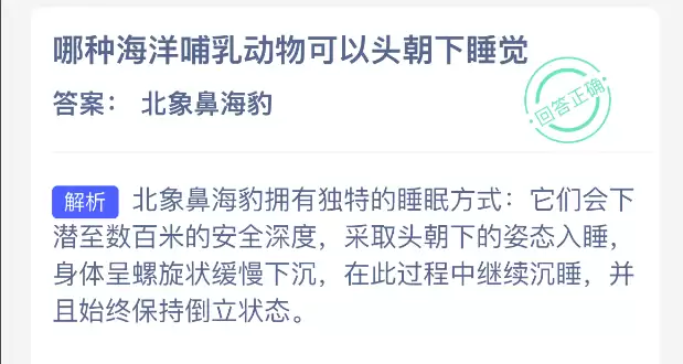 揭秘头朝下睡觉的海洋哺乳动物,支付宝神奇海洋今日答案