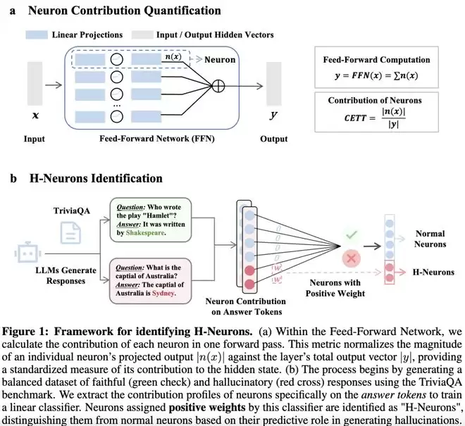 H-神经元的存在:模型中不到0.1%的神经元可以准确预测模型是否会生成幻觉响应;