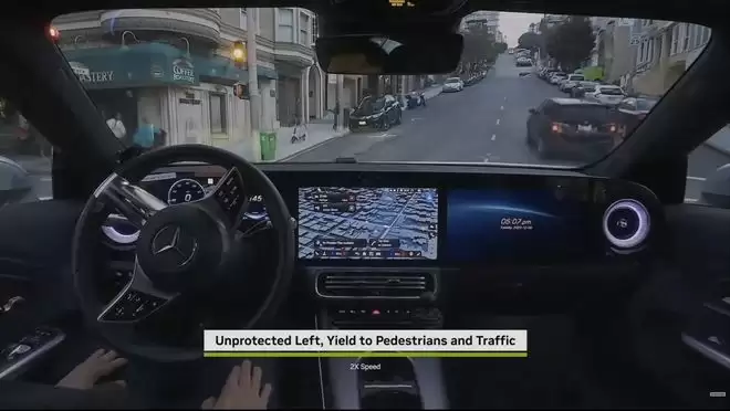 搭载Alpamayo的奔驰CLA在实际道路测试,图片来源:英伟达
