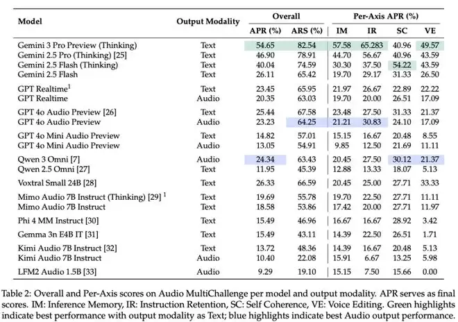 而一旦脱离这个外壳,面对Audio MultiChallenge中47名真实说话者录制的原始音频,模型的逻辑链条便会迅速崩塌。