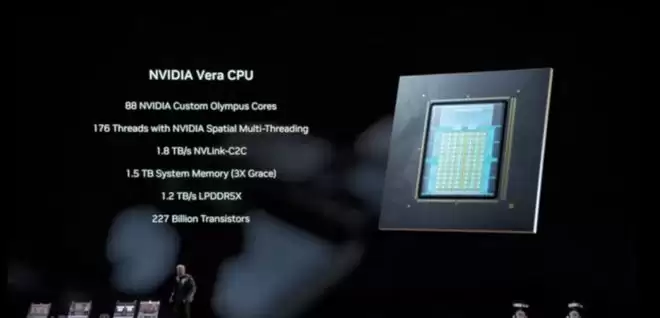 Vera Rubin系统由定制的Vera CPU与Rubin GPU组成,两者从设计之初就被定义为双向一致、低延迟的数据共享结构。Vera CPU拥有88个物理核心,通过空间多线程(Spatial Multi-Threading)技术实现176线程满速运行,强调在功耗受限环境下的性能密度。同时为了解决大规模集群的通信瓶颈,Rubin平台搭载了NVLink 6,提供了高达3.6T/s的双向带宽。