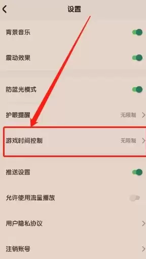 进入设置界面后,找到并点选“游戏时间控制”功能;