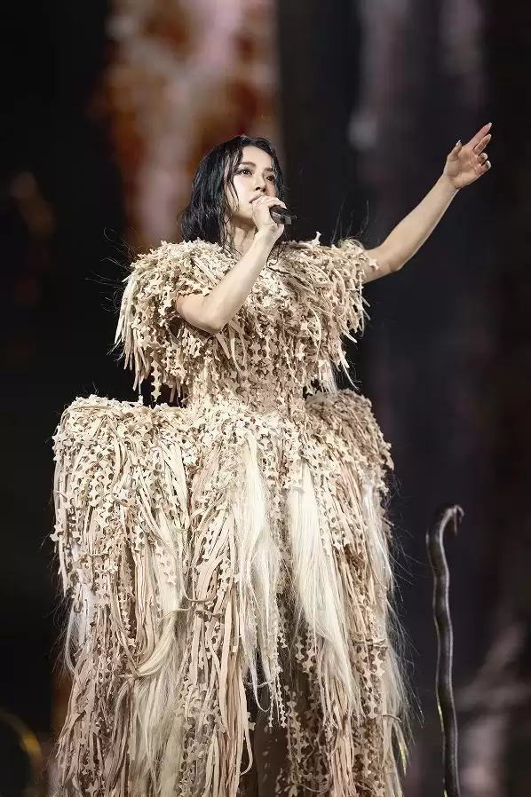 最终,蔡依林自象征主宰的“蛇冠心座”现身,伴随整场最宏大的装置——高达七层楼的“愉悦之女”巨型雕像缓缓升起,将视觉震撼与情感升华推向顶峰。这些装置以惊人的规模与创意,共同构建出一个可步入、可感知的“愉悦宇宙”,让观众完全沉浸于这场跨越叙事的感官之旅。
