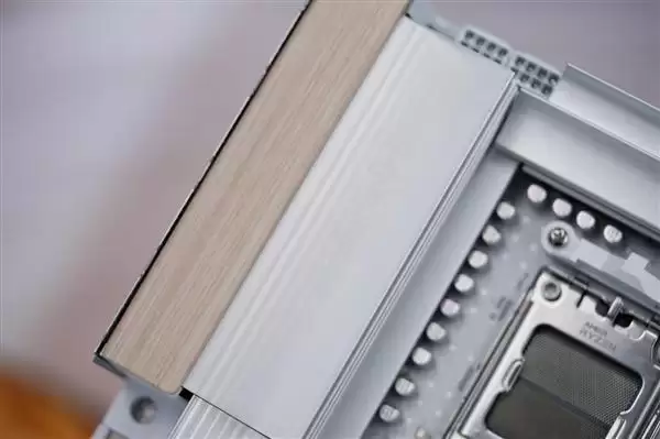 该主板采用AMD X870芯片组,基于AMD X870芯片组,以独特木质装饰设计脱颖而出 ——实木饰边搭配高端皮革拉片,科技感与质感兼具。