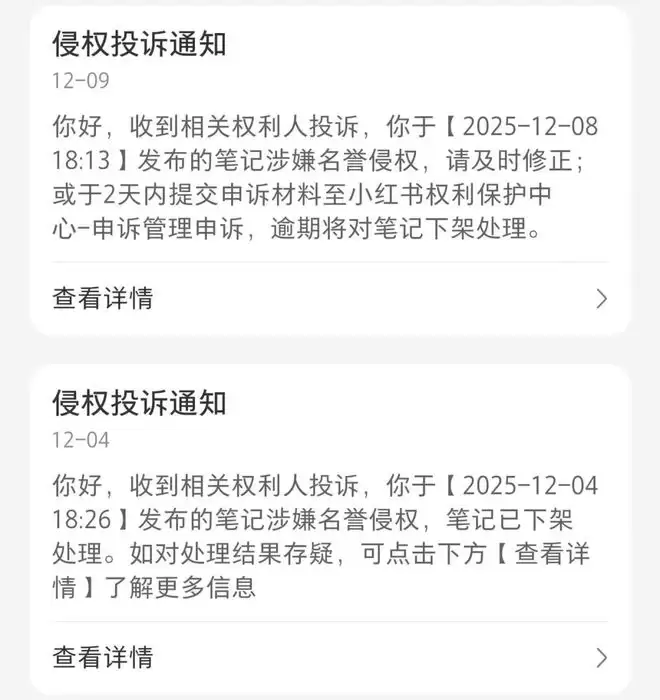 这种黑箱机制引发了更多的猜忌。"很多同行都认为,其实投诉提醒不一定意味着真的有人投诉,很可能是平台找不到明确违规的地方,又不希望这条内容存在,然后就告诉你有人投诉。"冯兰表示,不少创作者对于小红书模糊的投诉通知并不相信。