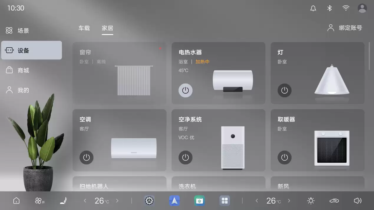 此次升级的一大亮点是新增了车家互联功能,它以车辆为核心,实现与智能家居的深度联动。用户只需在智慧物联App中绑定美居账号,即可通过车机系统控制家中的空调、灯光、窗帘、电热水器、扫地机器人、取暖器、空气净化器及新风系统等8类主流美居品牌家电。同时,该功能还支持通过美居App的家居场景一键备车,真正实现了人、车、家的无缝连接,为用户打造更加便捷的智慧生活体验。