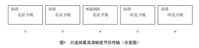 《指南》还要求,当同一个直播频道存在标清、高清和超高清等多种画质的节目时,只能选择最高清晰度节目进行传输,以解决一个同播频道占用多个频道号问题。