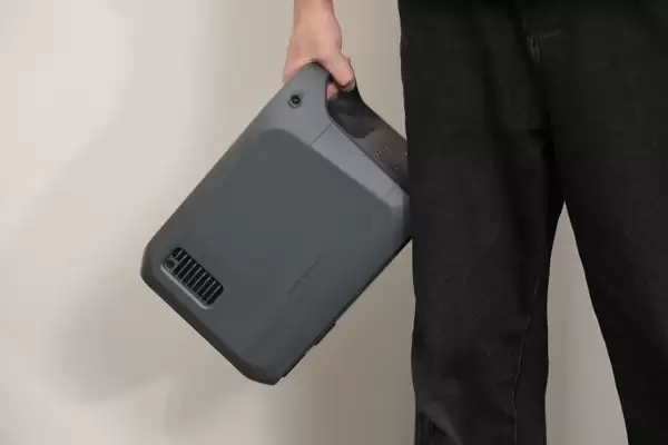 便携性是DJI Power 1000 Mini 最核心的突破点,也是其引领行业革新的关键。传统意义上,拥有1度电(约1000Wh)容量的户外电源往往意味着庞大的体积和可观的重量,携带与搬运颇为不便。Power 1000 Mini 通过电芯能量密度提升、高效的堆叠方案以及紧凑的逆变器设计,成功将容量为1008Wh的电源,塞进了仅约14升的体积内,整机重量控制在11.5公斤。