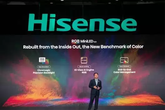 TrendForce集邦咨询分析师胡家榕向记者分析认为,在2026年CES,三星、海信、TCL、索尼等品牌不约而同地展出RGB-Mini LED或称Micro RGB电视,将过去液晶电视的Mini LED背光技术从白光转向RGB(红绿蓝)的彩光,达到100%甚至110% BT.2020色域。今年电视业将进入RGB-Mini LED普及元年。