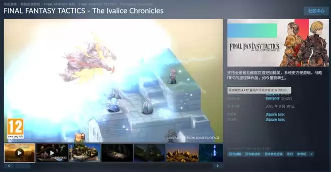 2025年9月30日发售的《最终幻想战略版-伊瓦利斯编年史》销量突破100万份!