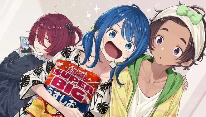 《败犬女主太多了》新卷插画,老八在睡衣派对抱着一袋2647大卡的薯片。