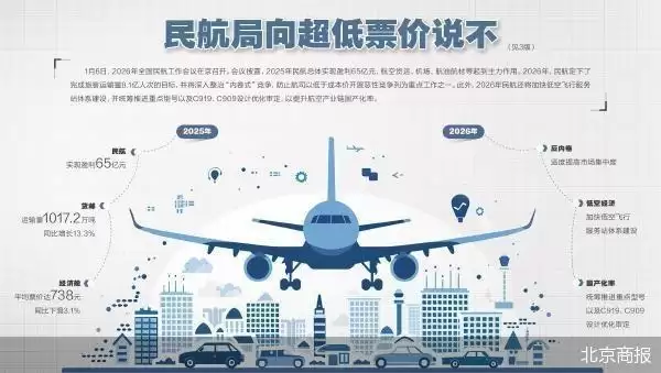 1月6日,2026年全国民航工作会议在京召开。会议披露,2025年民航总体实现盈利65亿元。北京商报记者了解到,航空货运、机场、航油航材等起到主力盈利作用。在客货运需求增长、国际航线扩展、精细化管理等多种因素作用下,民航经营效益进一步向好。2026年,民航定下了完成旅客运输量8.1亿人次的目标,并将深入整治“内卷式”竞争、防止航司以低于成本价开展恶性竞争列为重点工作之一。此外,会议还提出,2026年民航还将加快低空飞行服务站体系建设,并统筹推进重点型号以及C919、C909设计优化审定,有序推进机载设备、辅助动力装置等关键产品审定,以提升航空产业链国产化率。