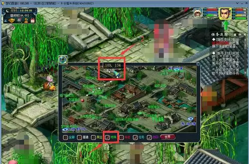 第三步,抵达【建邺城】后,按下快捷键【Tab键】打开小地图,勾选地图下方的【特殊】项目。此时会发现地图上出现了许多绿色NPC名称,找到【勾魂马面】并选中,游戏角色将自动寻路前往。