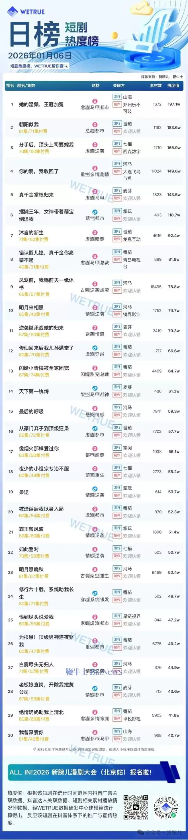 6日短剧热度榜:《她的涅槃》夺冠,《王冠加冕》热播4168万