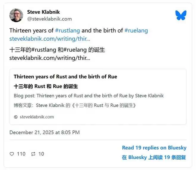 2025 年 12 月 21 日,Steve Klabnik 迎来了他使用 Rust 的第十三个年头。作为 Rust 社区早期的核心人物之一,他在技术圈有着特殊的地位。在即将迈入 40 岁门槛之际,他在博客中坦言,过去几年过得颇为艰难,但现在的状态是「非常快乐」。