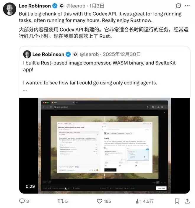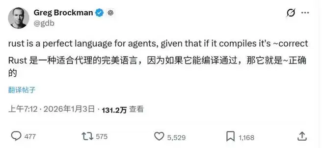就在 Klabnik 公布 Rue 的几天后,OpenAI 的联合创始人 Greg Brockman 在 X 上发的一条帖子,从另一个侧面印证了 Klabnik 的实践。