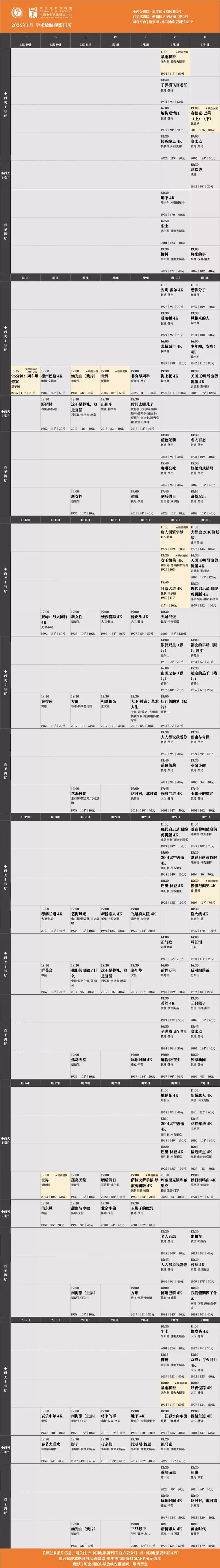 全新专题策划将从今年3月开启。本月重磅加场活动还在路上,即将公布,非常厉害,你们准备抢票就行。所有场次均可在淘票票、中国电影资料馆APP购票,具体排片见末图,祝大家观影愉快。❤️