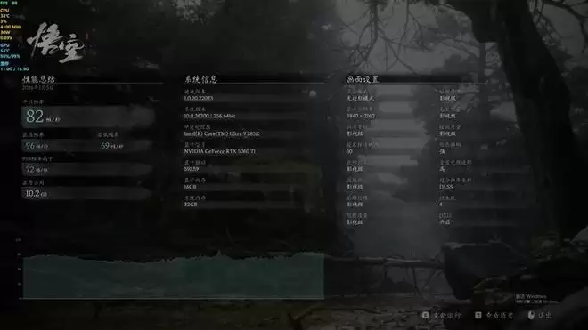 《黑神话·悟空》在开启DLSS 4最高的4X级别多帧生成时,在4K分辨率下的测试帧率为82。