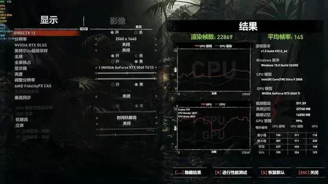 在《古墓丽影:暗影》中,使用最高画质进行测试,DLSS超级采样关闭,2K分辨率测试成绩为145帧,4K分辨率测试成绩为73fps。