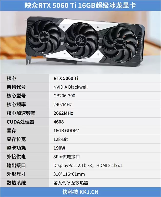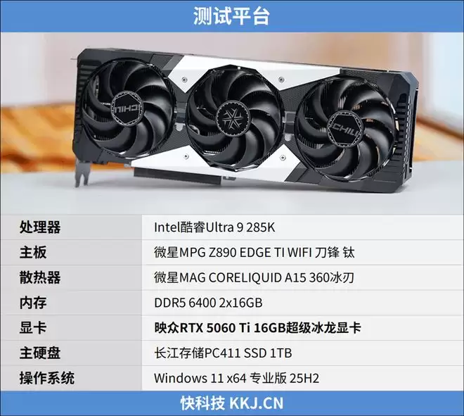 这次来到我们快科技评测室的映众RTX 5060 Ti 16GB超级冰龙显卡,就是这样一块大显存显卡,16G GDDR7显存让它在4K游戏中也能全力释放DLSS 4性能,再加上冰龙系列一惯的高规格,几乎就是RTX 5060 Ti的最强形态,非常值得玩家选择。