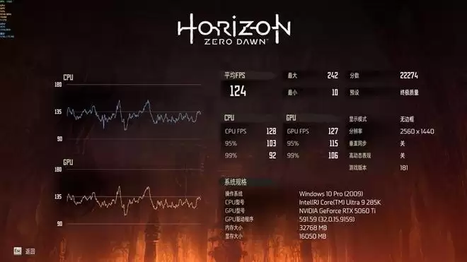 在《地平线:零之曙光》中,使用终极质量画质进行测试,2K分辨率测试成绩为124帧,4K分辨率测试成绩为69fps。