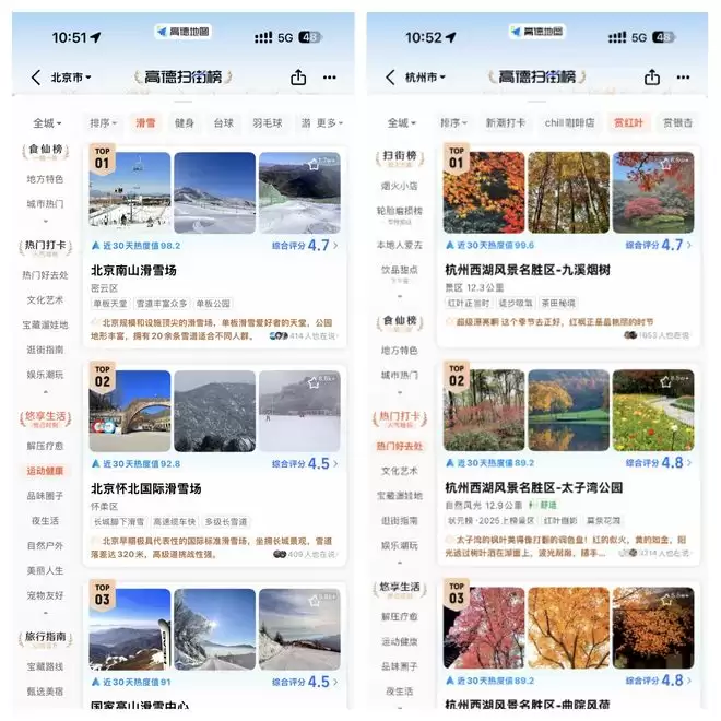 截至目前,高德已生成6553个时令榜单、1550个品类榜单。