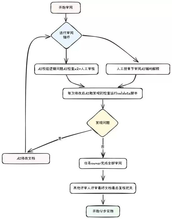 设计文档的审阅是一个迭代优化的过程,需要人和 AI 协作来确保文档质量。我们建立了系统化的审阅流程,通过多轮迭代逐步完善设计文档,直到达到实施标准。