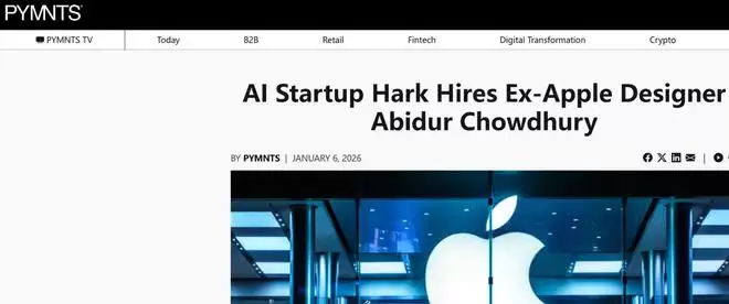 【环球网科技综合报道】1月7日消息,据pymnts报道,人工智能初创公司Hark宣布聘请前苹果高级设计师Abidur Chowdhury担任设计主管,进一步强化其在人工智能产品体验与人机交互领域的核心团队。