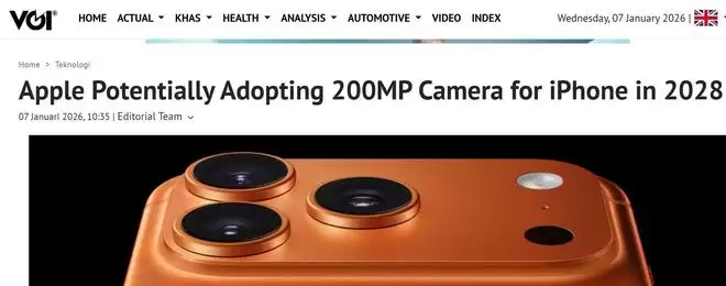 【环球网科技综合报道】1月7日消息,据外媒9to5Mac援引知情人士报道,苹果公司正计划在其iPhone产品线中引入2亿像素主摄像头,预计最早将于2028年正式亮相。若消息属实,这将是苹果自iPhone 14系列以来首次大幅提升摄像头分辨率——此前其主摄一直维持在4800万像素。