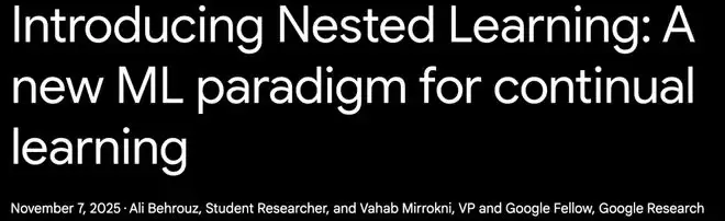 去年11月初,谷歌DeepMind团队还发布了号称解决「可持续学习」难题的新的机器学习范式──嵌套学习(nested learning)。