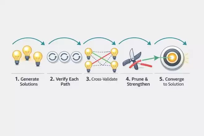 专家型思考者并不会沿着一条冗长的推理链一路走到底,而是同时运行多个验证循环。