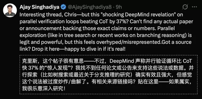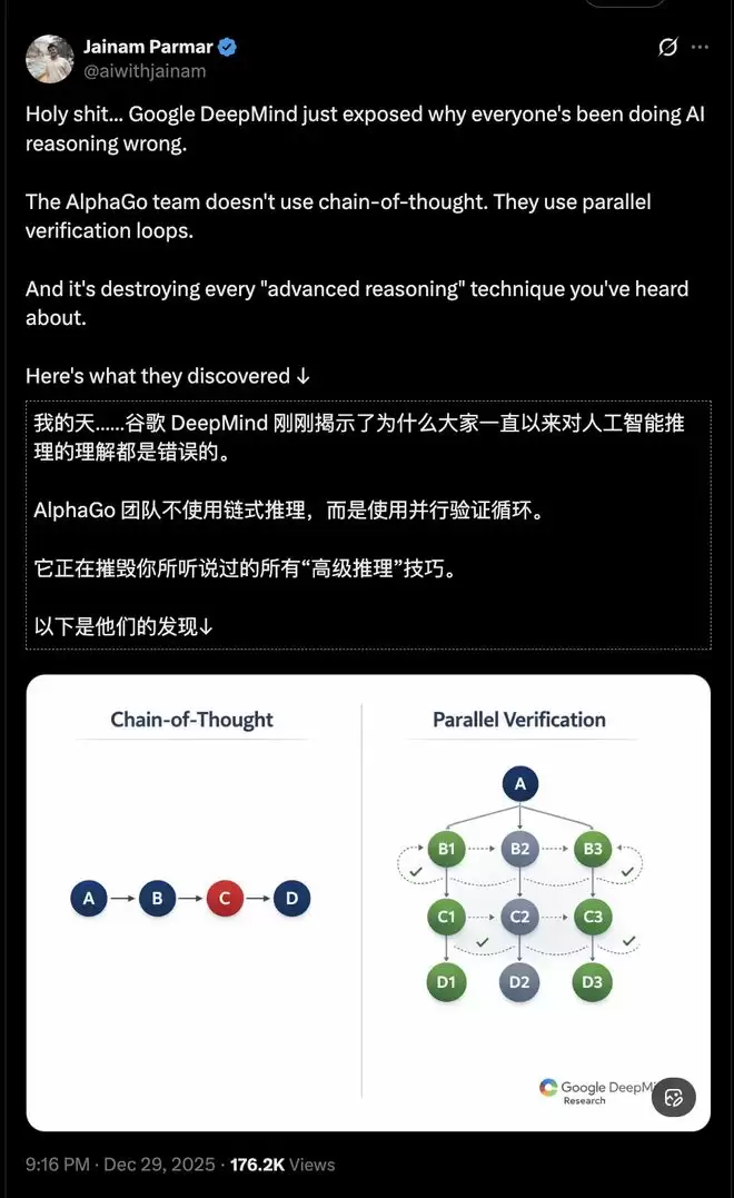 至少目前,没有任何可靠证据表明DeepMind已将「并行验证循环」作为核心推理框架,全面取代Chain-of-Thought。