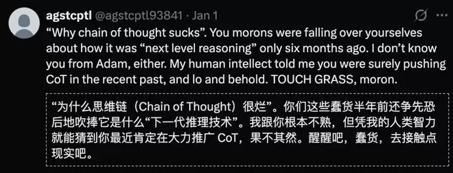 更有网友毫不客气地指出,发帖人就是蹭热度,半年前他还在鼓吹「CoT就是下一代推理技术」。