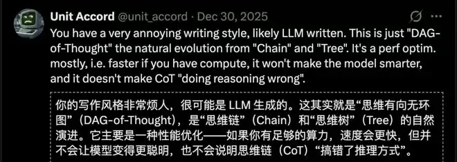 原推文那种藏头露尾、吊人胃口的写作风格,令人不喜,甚至部分网友怀疑,帖子压根就是大模型生成的!