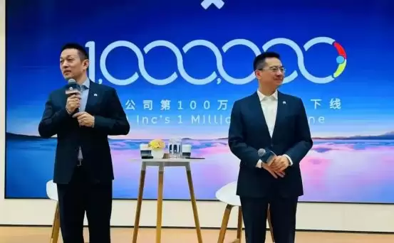 安徽合肥蔚来先进制造新桥二工厂内,随着一台全新ES8驶下生产线,蔚来汽车正式达成第100万台量产车下线的成就。