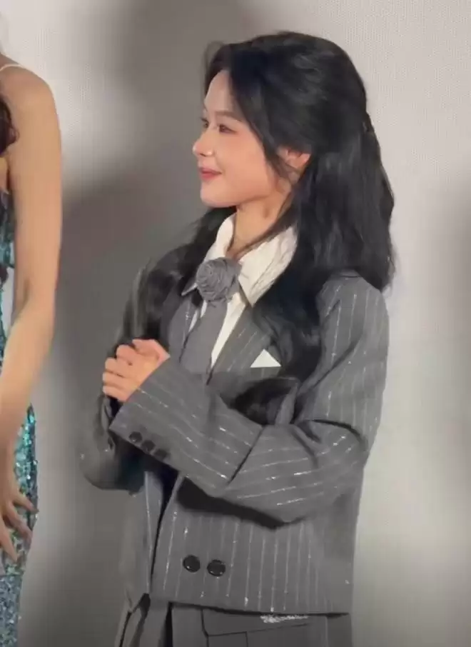 但当天的其他女明星不约而同选择了裙装,都是偏大气端庄的风格,这就导致余茵的穿搭越看越像小孩。